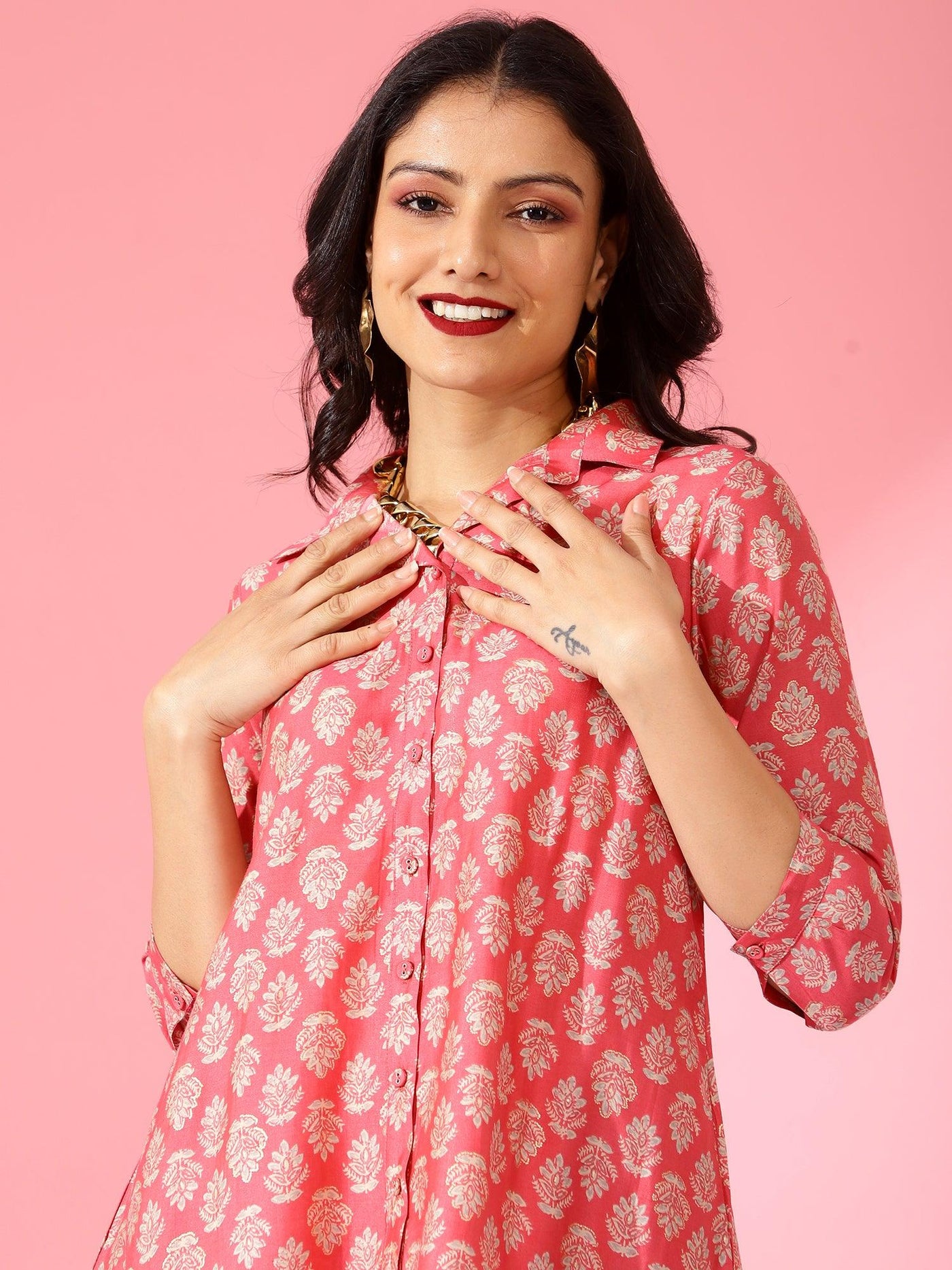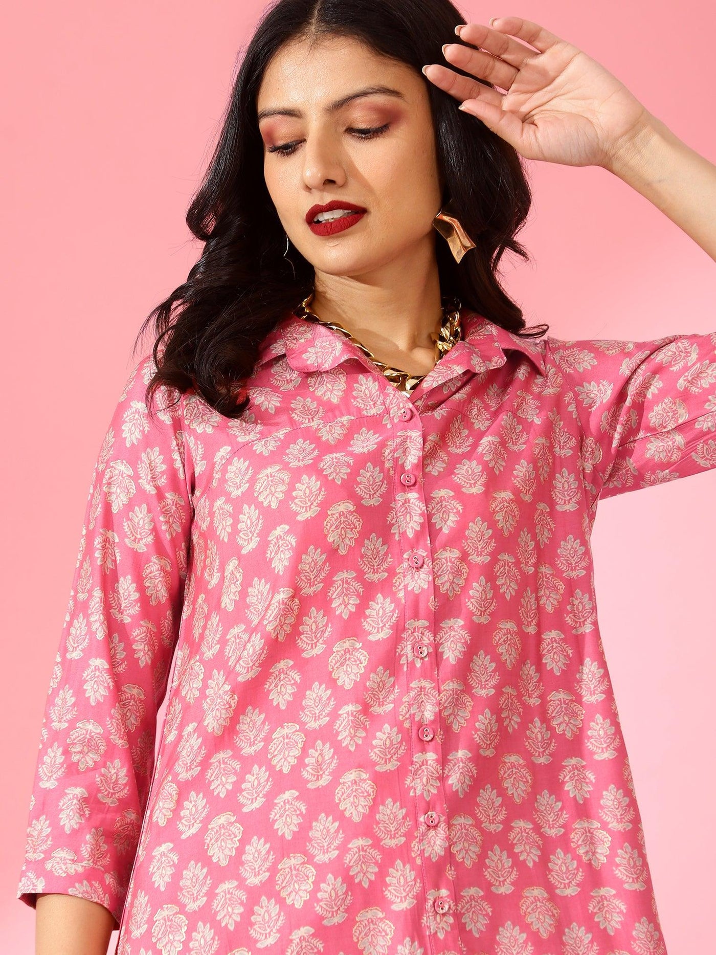 Women Printed Co-Ord Set Pink