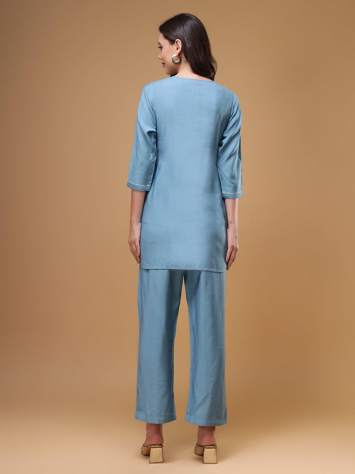 Made from soft, breathable fabric, this co-ord set ensures all-day comfort while keeping you chic and stylish. Pair it with statement accessories and your favorite footwear for an elevated look, or keep it simple for a relaxed, elegant vibe.