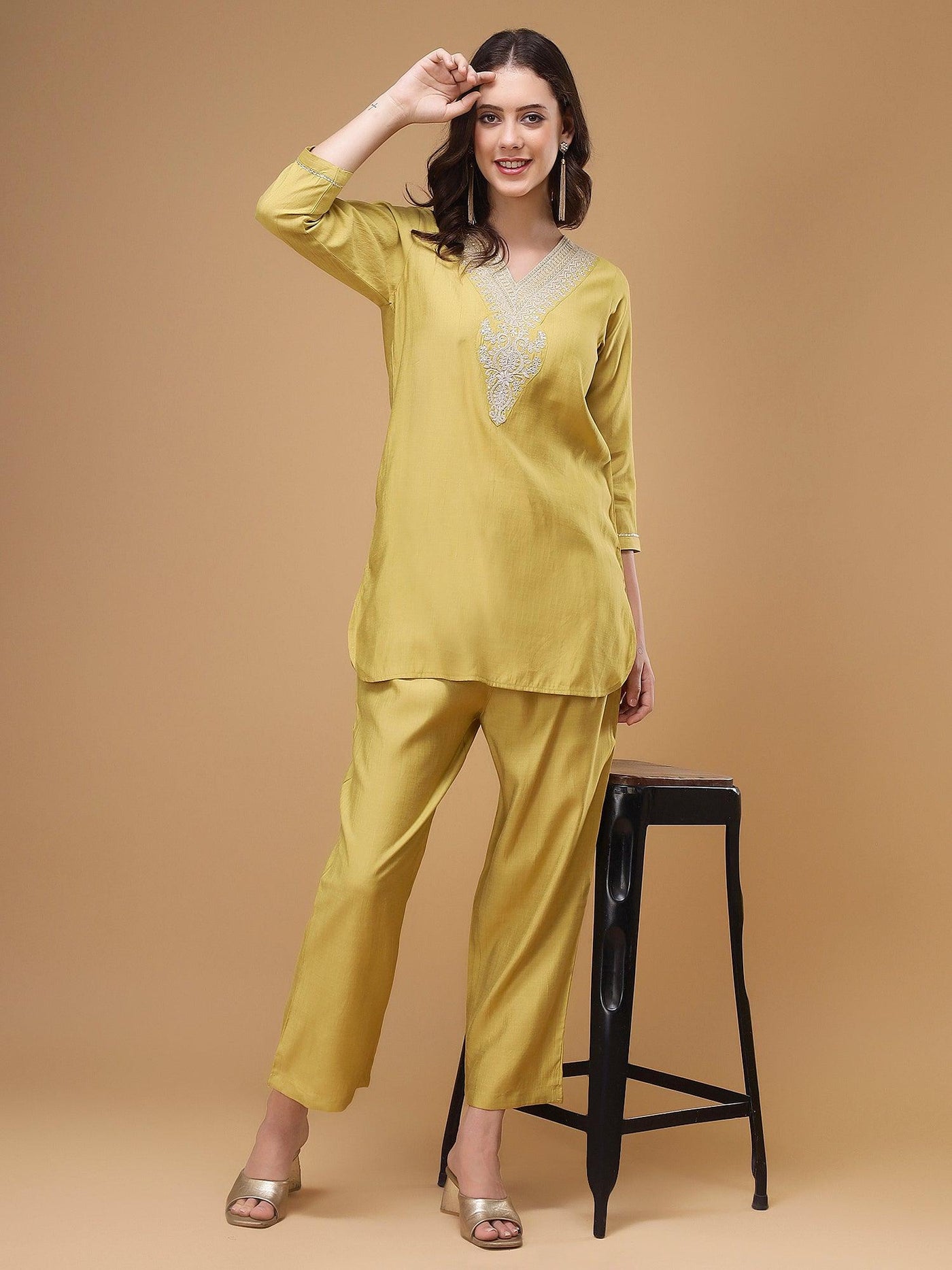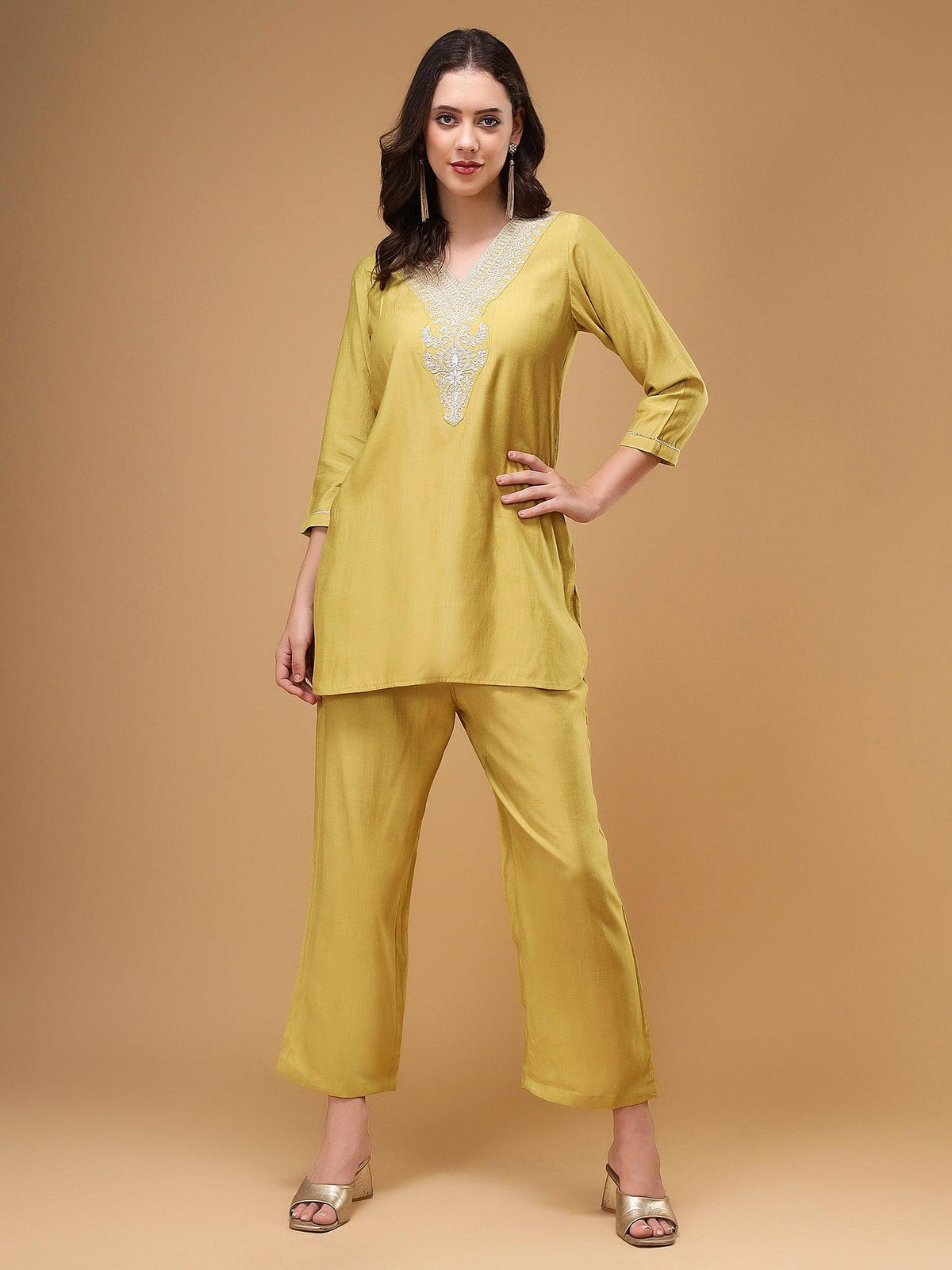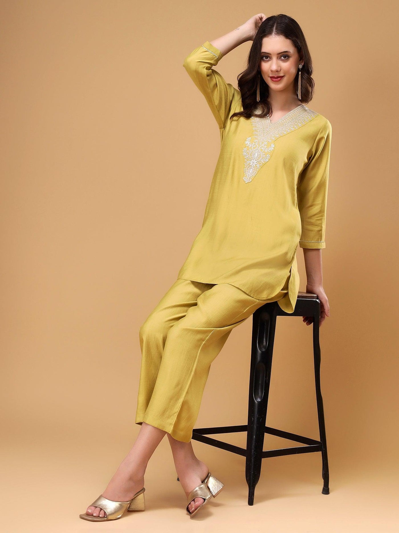 Crafted from soft, breathable fabric, it offers a flattering fit while keeping you comfortable all day long. Whether you're heading to a brunch, a family gathering, or a special event, this co-ord set ensures you look effortlessly chic. Pair it with statement earrings and heels for a polished look, or keep it simple with flats for understated elegance.