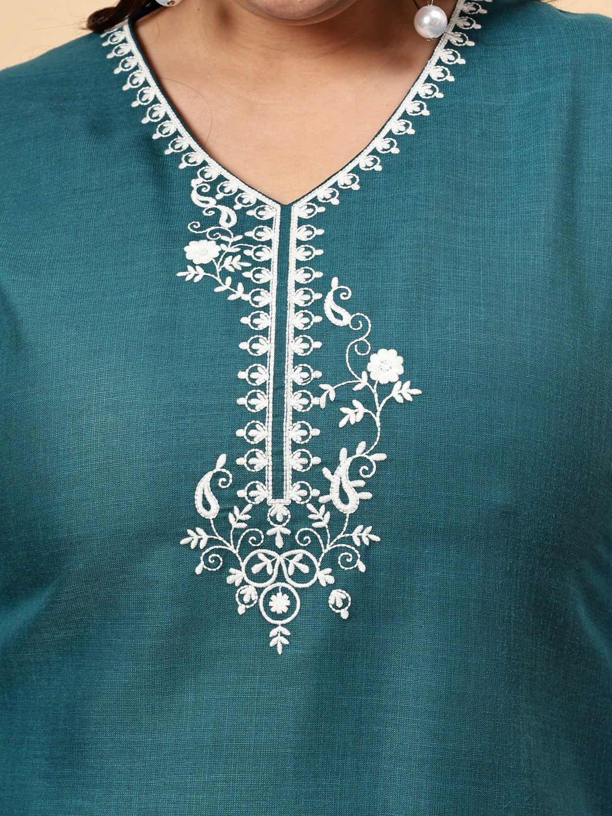 • "Make a statement with this green and white embroidered co-ords set, featuring a stunning tunic and matching palazzos. The tunic showcases intricate embroidery, a flattering V-neck, and elegant three-quarter sleeves, complemented by a full placket button closure and a regular waist hem for a refined finish. The palazzos in a solid brown and white design feature a mid-rise fit, a slip-on closure, and a flared hem, offering both comfort and style. Perfect for casual outings or semi-formal events, this green and white embroidered co-ords set is a versatile addition to your wardrobe. Embrace effortless elegance with this chic tunic and palazzos set."