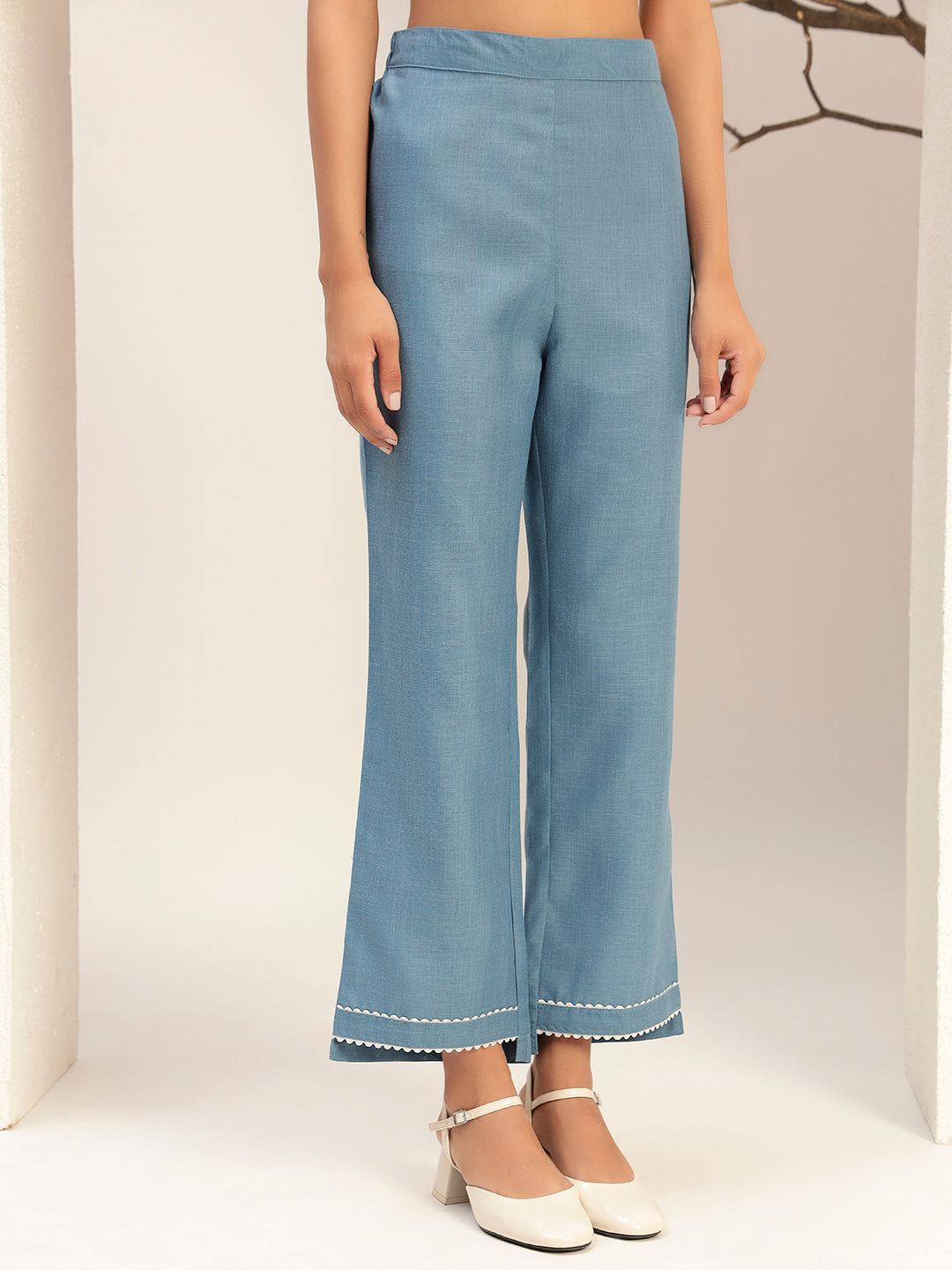 Crafted from a lightweight and breathable fabric, this co-ords set is designed to ensure a comfortable and flattering fit for all-day wear. The serene blue color and delicate embroidery make this tunic and trouser set a sophisticated choice for a variety of occasions, from a casual day out to a relaxed social gathering.